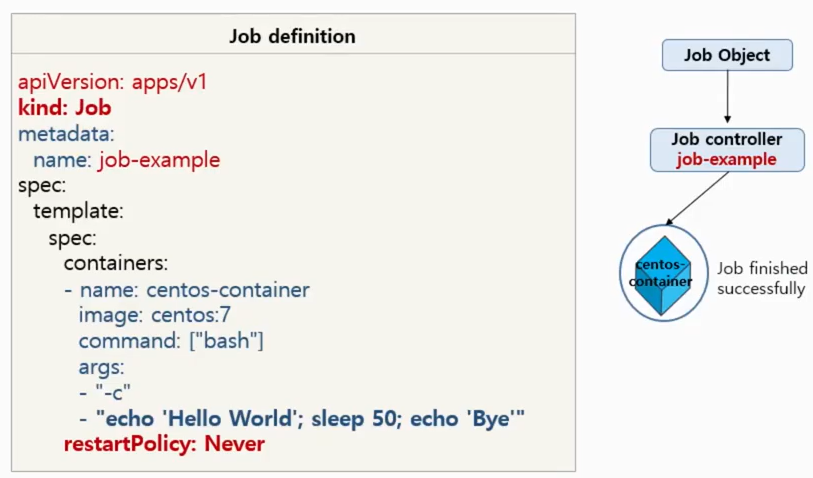 - Batch 처리하는 Pod는 작업이 완료되면 종료됨